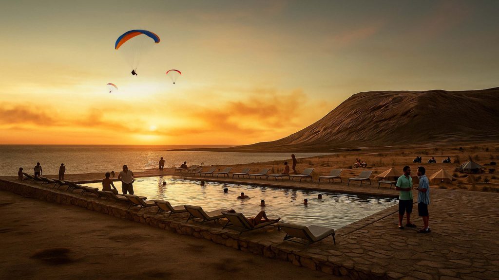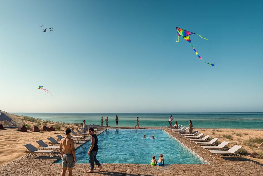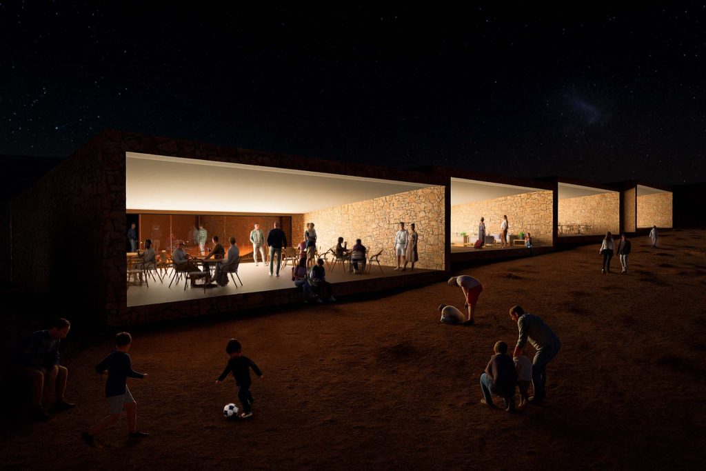 The Tower design is inspired by tradition and nature in the form of the Arabian cloak (Bisht), the inner garment (Thawb) and the pearls native to the region. The Arabic cloak has been chosen for both symbolic and functional reasons. It is often seen as a badge of national identity in the Middle East. Functionally its suitability as a form of dress can be applied equally to a building, to moderate the temperature and to filter the dust as well as creating a framework for supporting photovoltaics and establishing a “pergola” for shading outside spaces. It would stand as a symbol of human endeavour.